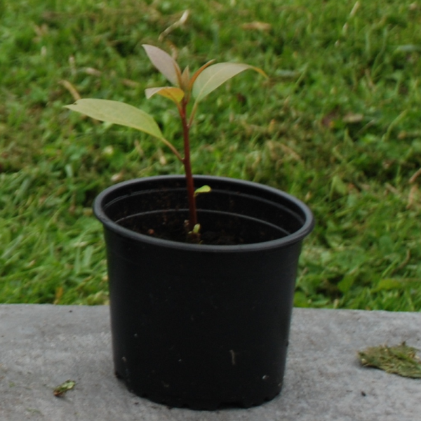 This is an avocado tree grown from seed. It comes in a 350-500-millilitre (0,35-0,5 dm³) bag or pot filled with our own avocado compost.